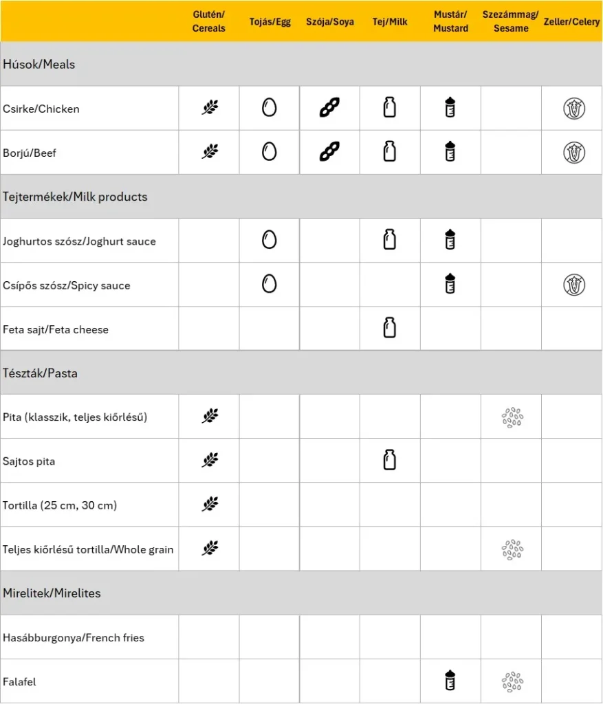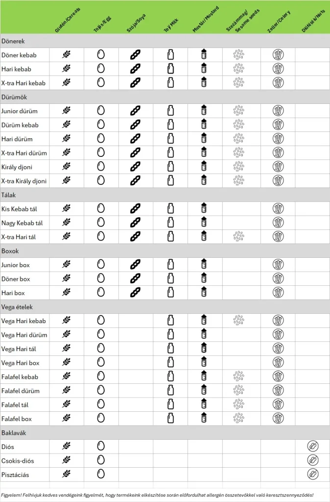 Allergén táblázat
